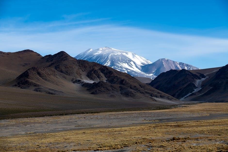 This unique geography results in a cold‚ dry climate with significant temperature fluctuations between day and night. Sparse vegetation‚ adapted to the harsh conditions‚ dots the landscape‚ creating a distinctive and breathtaking environment.